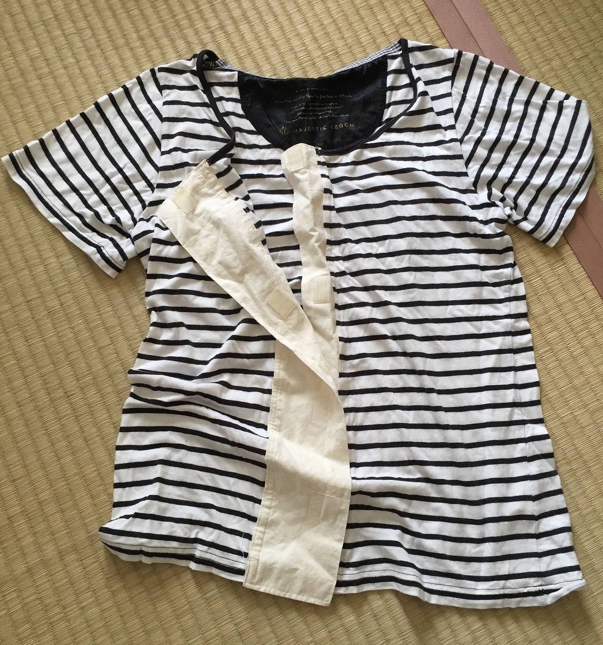 普通のTシャツを前で切ってマジックテープを付けたもの。